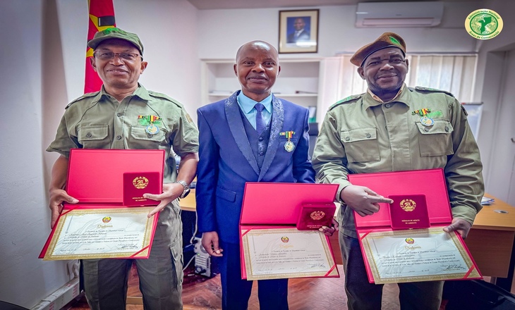 MAPUTO, 27 DE JUNHO DE 2025 – O Director Geral Adjunto da Administração Nacional das Áreas de Conservação (ANAC), Severiano Khoy e membros do Conselho Directivo, receberam em audiência, nesta sexta-feira, 27 de Junho de 2025, os Administradores do Parque Nacional do Zinave, Gorongosa e de Arquipélago do Bazaruto que foram condecorados pelo Presidente da República, Daniel Chapo, com Medalha de Mérito de Ambiente