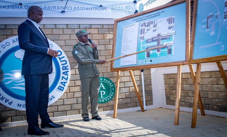 “𝘈𝘯𝘵𝘦𝘴 𝘥𝘦 𝘤𝘩𝘦𝘨𝘢𝘳𝘮𝘰𝘴 𝘢 𝘦𝘴𝘵𝘢 𝘴𝘢𝘭𝘢, 𝘵𝘦𝘴𝘵𝘦𝘮𝘶𝘯𝘩𝘢𝘮𝘰𝘴 𝘢 𝘪𝘯𝘢𝘶𝘨𝘶𝘳𝘢çã𝘰 𝘥𝘰𝘴 𝘯𝘰𝘷𝘰𝘴 𝘌𝘴𝘤𝘳𝘪𝘵ó𝘳𝘪𝘰𝘴 𝘥𝘰 𝘗𝘢𝘳𝘲𝘶𝘦 𝘕𝘢𝘤𝘪𝘰𝘯𝘢𝘭 𝘥𝘰 𝘈𝘳𝘲𝘶𝘪𝘱é𝘭𝘢𝘨𝘰 𝘥𝘦 𝘉𝘢𝘻𝘢𝘳𝘶𝘵𝘰, 𝘶𝘮 𝘮𝘰𝘮𝘦𝘯𝘵𝘰 𝘱𝘳𝘰𝘧𝘶𝘯𝘥𝘢𝘮𝘦𝘯𝘵𝘦 𝘴𝘪𝘮𝘣ó𝘭𝘪𝘤𝘰 𝘲𝘶𝘦 𝘪𝘭𝘶𝘴𝘵𝘳𝘢 𝘰 𝘳𝘶𝘮𝘰 𝘲𝘶𝘦 𝘦𝘴𝘵𝘢𝘮𝘰𝘴 𝘢 𝘴𝘦𝘨𝘶𝘪𝘳 𝘱𝘢𝘳𝘢 𝘰 𝘧𝘶𝘵𝘶𝘳𝘰 𝘥𝘰 𝘵𝘶𝘳𝘪𝘴𝘮𝘰 𝘦𝘮 𝘔𝘰ç𝘢𝘮𝘣𝘪𝘲𝘶𝘦. 𝘛𝘳𝘢𝘵𝘢-𝘴𝘦 𝘥𝘦 𝘶𝘮𝘢 𝘪𝘯𝘧𝘳𝘢𝘦𝘴𝘵𝘳𝘶𝘵𝘶𝘳𝘢 𝘮𝘰𝘥𝘦𝘳𝘯𝘢, 𝘤𝘰𝘯𝘤𝘦𝘣𝘪𝘥𝘢 𝘥𝘦 𝘳𝘢𝘪𝘻, 𝘲𝘶𝘦 𝘷𝘦𝘮 𝘥𝘢𝘳 𝘶𝘮 𝘯𝘰𝘷𝘰 𝘧ô𝘭𝘦𝘨𝘰 à 𝘨𝘦𝘴𝘵ã𝘰 𝘴𝘶𝘴𝘵𝘦𝘯𝘵á𝘷𝘦𝘭 𝘥𝘦𝘴𝘵𝘢 𝘫ó𝘪𝘢 𝘯𝘢𝘵𝘶𝘳𝘢𝘭 𝘲𝘶𝘦 é 𝘔𝘰ç𝘢𝘮𝘣𝘪𝘲𝘶𝘦. 𝘎𝘰𝘴𝘵𝘢𝘳í𝘢𝘮𝘰𝘴 𝘥𝘦 𝘧𝘦𝘭𝘪𝘤𝘪𝘵𝘢𝘳 𝘢𝘰 𝘗𝘢𝘳𝘲𝘶𝘦 𝘕𝘢𝘤𝘪𝘰𝘯𝘢𝘭 𝘥𝘰 𝘈𝘳𝘲𝘶𝘪𝘱é𝘭𝘢𝘨𝘰 𝘥𝘦 𝘉𝘢𝘻𝘢𝘳𝘶𝘵𝘰 𝘦 𝘢𝘰 𝘈𝘧𝘳𝘪𝘤𝘢𝘯 𝘗𝘢𝘳𝘬𝘴 𝘕𝘦𝘵𝘸𝘰𝘳𝘬 𝘱𝘦𝘭𝘰𝘴 𝘯𝘰𝘷𝘰𝘴 𝘦𝘴𝘤𝘳𝘪𝘵ó𝘳𝘪𝘰𝘴 𝘦 𝘵𝘢𝘮𝘣é𝘮 𝘱𝘦𝘭𝘰 𝘯𝘰𝘷𝘰 𝘊𝘦𝘯𝘵𝘳𝘰 𝘥𝘦 𝘍𝘰𝘳𝘮𝘢çã𝘰 𝘉á𝘴𝘪𝘤𝘢 𝘥𝘦 𝘍𝘪𝘴𝘤𝘢𝘪𝘴 𝘤𝘰𝘯𝘴𝘵𝘳𝘶í𝘥𝘰 𝘯𝘢 𝘐𝘭𝘩𝘢 𝘥𝘦 𝘉𝘢𝘻𝘢𝘳𝘶𝘵𝘰, 𝘯𝘰 𝘱𝘰𝘷𝘰𝘢𝘥𝘰 𝘥𝘦 𝘔𝘢𝘱𝘶𝘭𝘦 — 𝘶𝘮 𝘪𝘯𝘷𝘦𝘴𝘵𝘪𝘮𝘦𝘯𝘵𝘰 𝘦𝘴𝘵𝘳𝘶𝘵𝘶𝘳𝘢𝘯𝘵𝘦 𝘲𝘶𝘦 𝘳𝘦𝘧𝘰𝘳ç𝘢 𝘢 𝘤𝘢𝘱𝘢𝘤𝘪𝘥𝘢𝘥𝘦 𝘵é𝘤𝘯𝘪𝘤𝘢 𝘦 𝘰𝘱𝘦𝘳𝘢𝘤𝘪𝘰𝘯𝘢𝘭 𝘥𝘦𝘴𝘵𝘢 𝘪𝘮𝘱𝘰𝘳𝘵𝘢𝘯𝘵𝘦 á𝘳𝘦𝘢 𝘥𝘦 𝘤𝘰𝘯𝘴𝘦𝘳𝘷𝘢çã𝘰.” – disse o Presidente da República, Daniel Chapo.